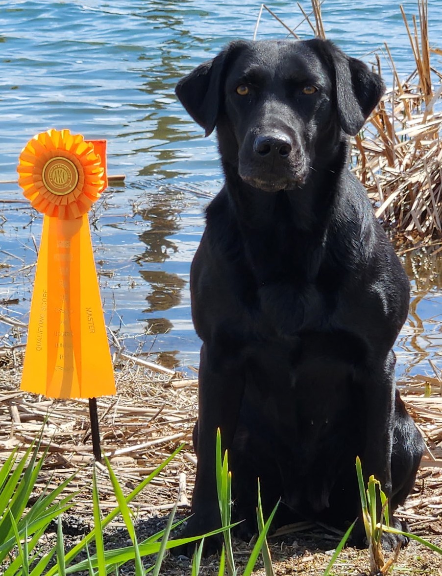 Callname: GINGER Gender: Female Color: BLK coat Genotype: Black - Hidden Choc - EEBb Whelp Date: 6/1/2020 Owner: Joan St. Hilaire Breeder: Joan St. Hilaire