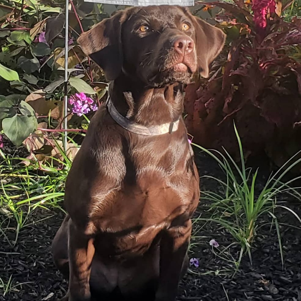 Callname: Ruby Gender: Female Color: CHOC coat Genotype: Chocolate - Hidden Black - EEbb Whelp Date: 3/29/2020 Owner: Michael Menser Breeder: Lesa/ Ernest Pollard