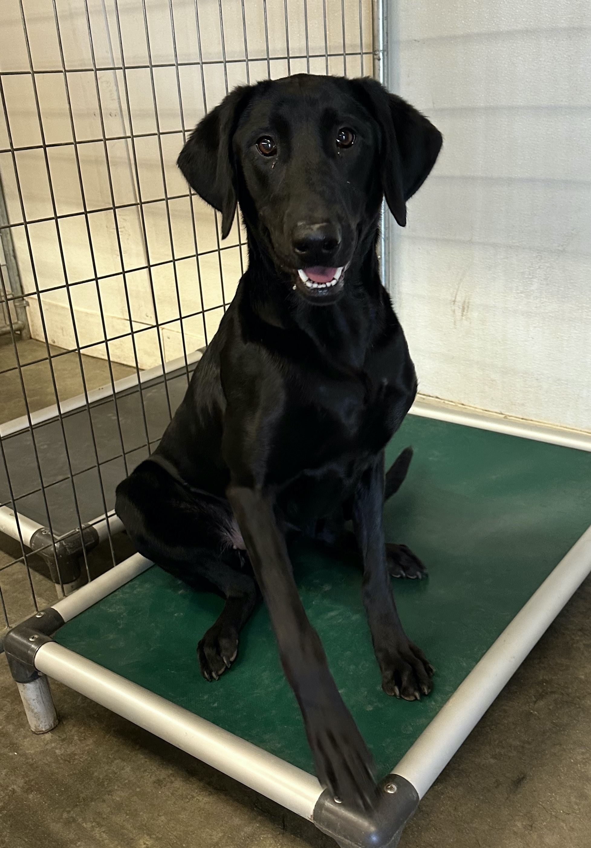 Callname: Deja Gender: Female Color: BLK coat Genotype: Black - Hidden Yellow - EeBB Whelp Date: 1/21/2022 Owner: Casey & Jessica Dowler Breeder: Jessica & Casey Dowler